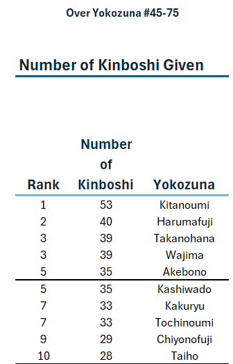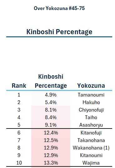 Work in Progress: Kinboshi Stats Comparison for Yokozuna in the Modern Era (as of August 2025)