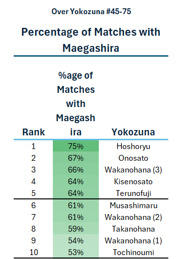 But it’s also giving me an idea of how much to think about the dominance of various Yokozuna. If nothing else, they should be dominating the rank-and-file.